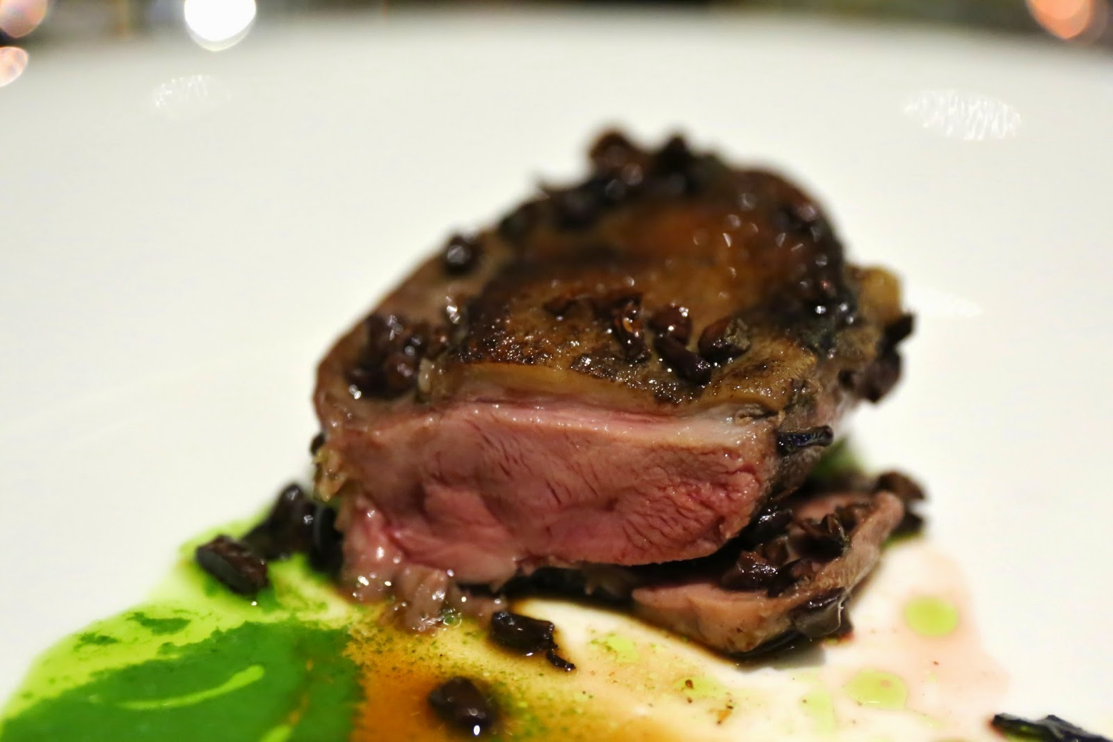 Pigeon with cocoa, asparagus, and watercress sauce - all but one of us went for the pigeon, and it's easy to see why.