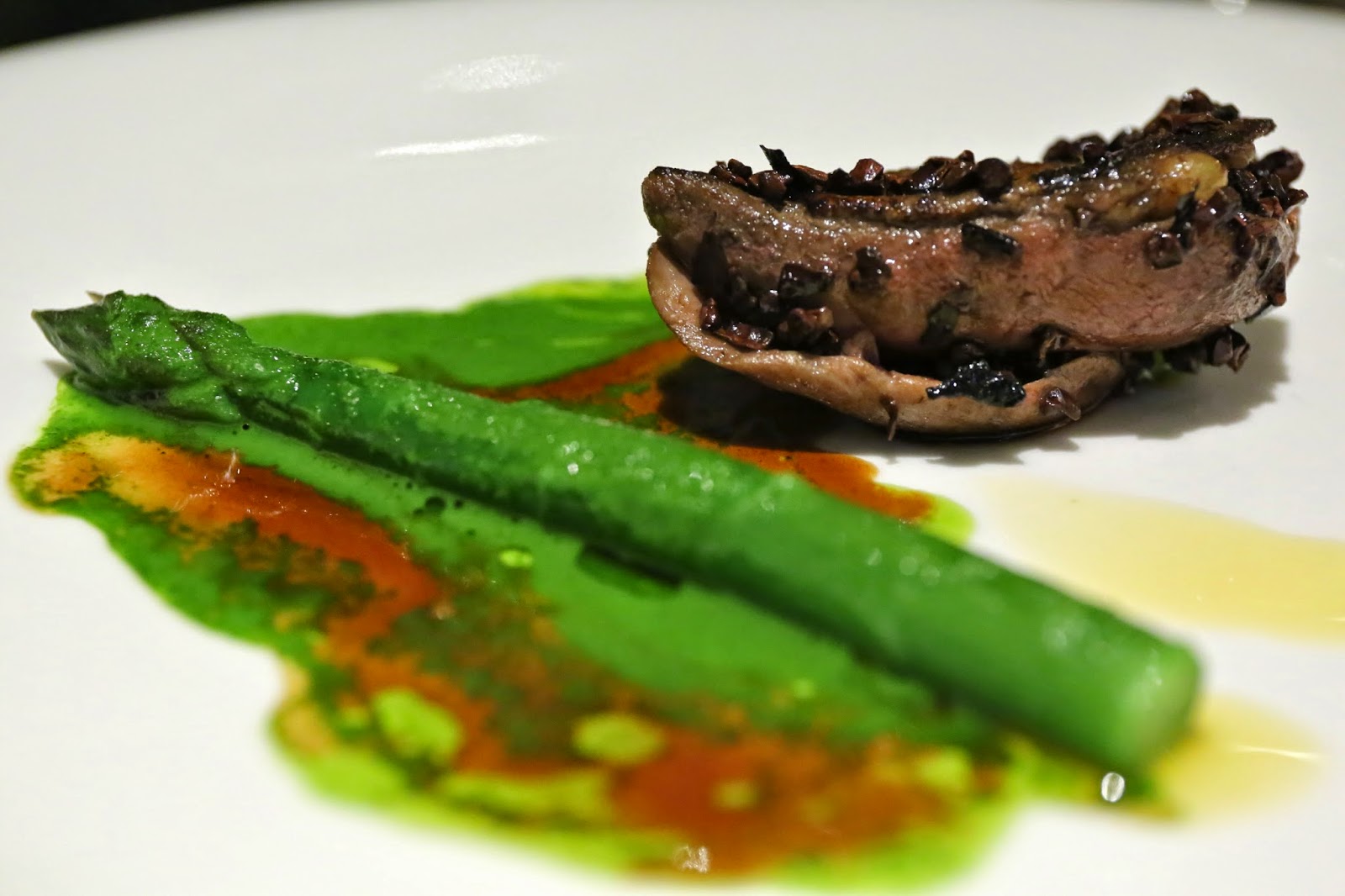 The pigeon wasn't as rare as I would normally prefer, but it was still very tender. The cocoa was an interesting touch. Of course this is now asparagus season, so needless to say the spear was very nice.