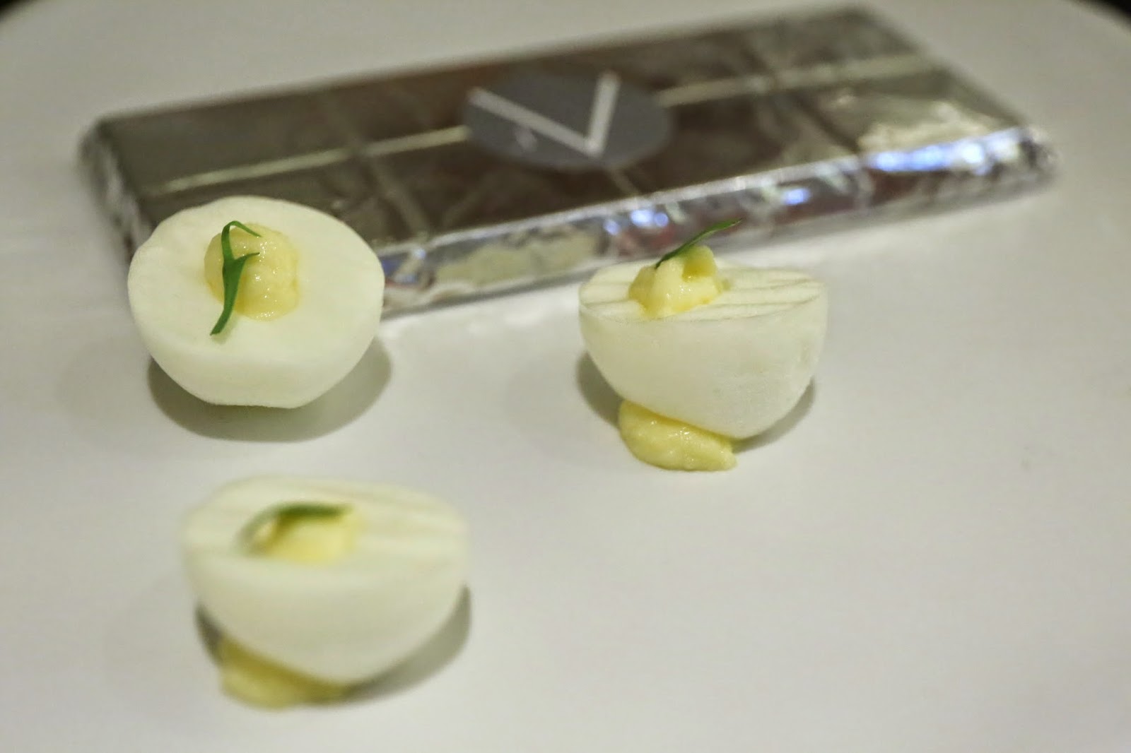 Celtuce with foie gras (?) and raspberries - can't remember what the filling was... but possibly not foie gras as the whole thing was pretty light.