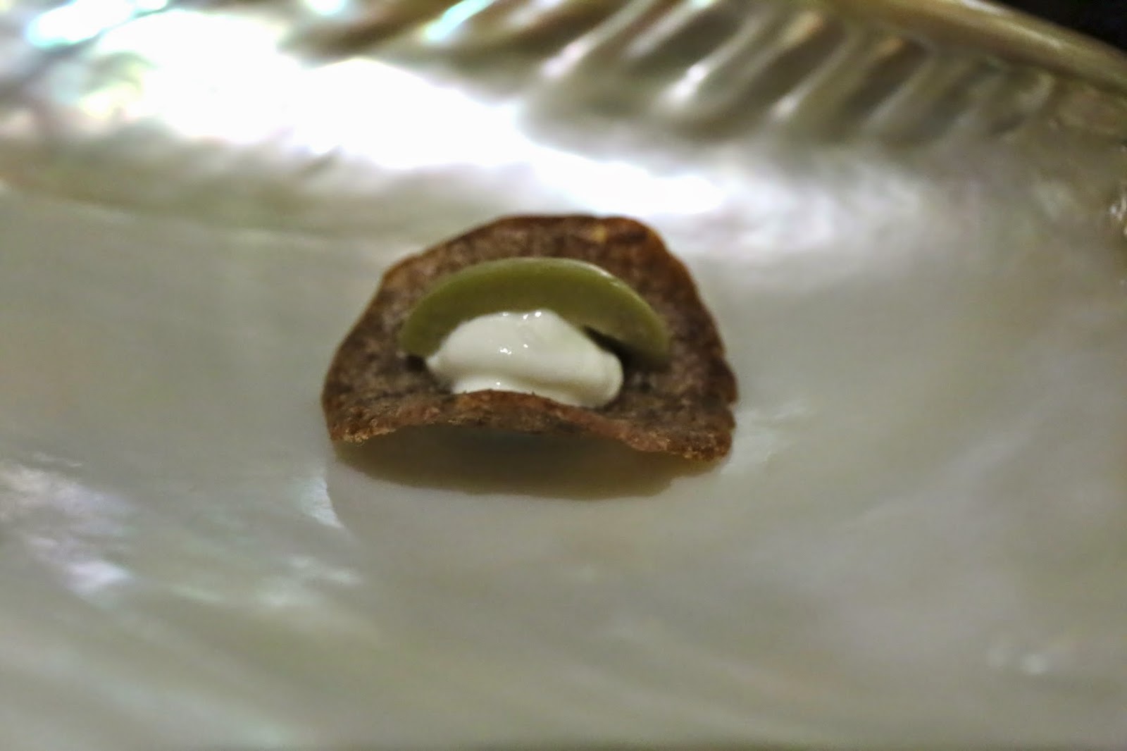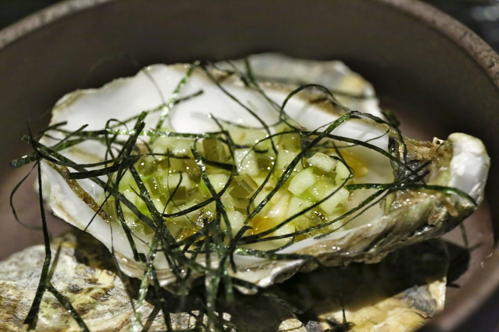 Gillardeau oyster tartare with nori seaweed, apple, olive oil, and pepper - refreshing and delicious, with the finely diced apple providing nice crunchy texture as a contrast, as well as acidity.