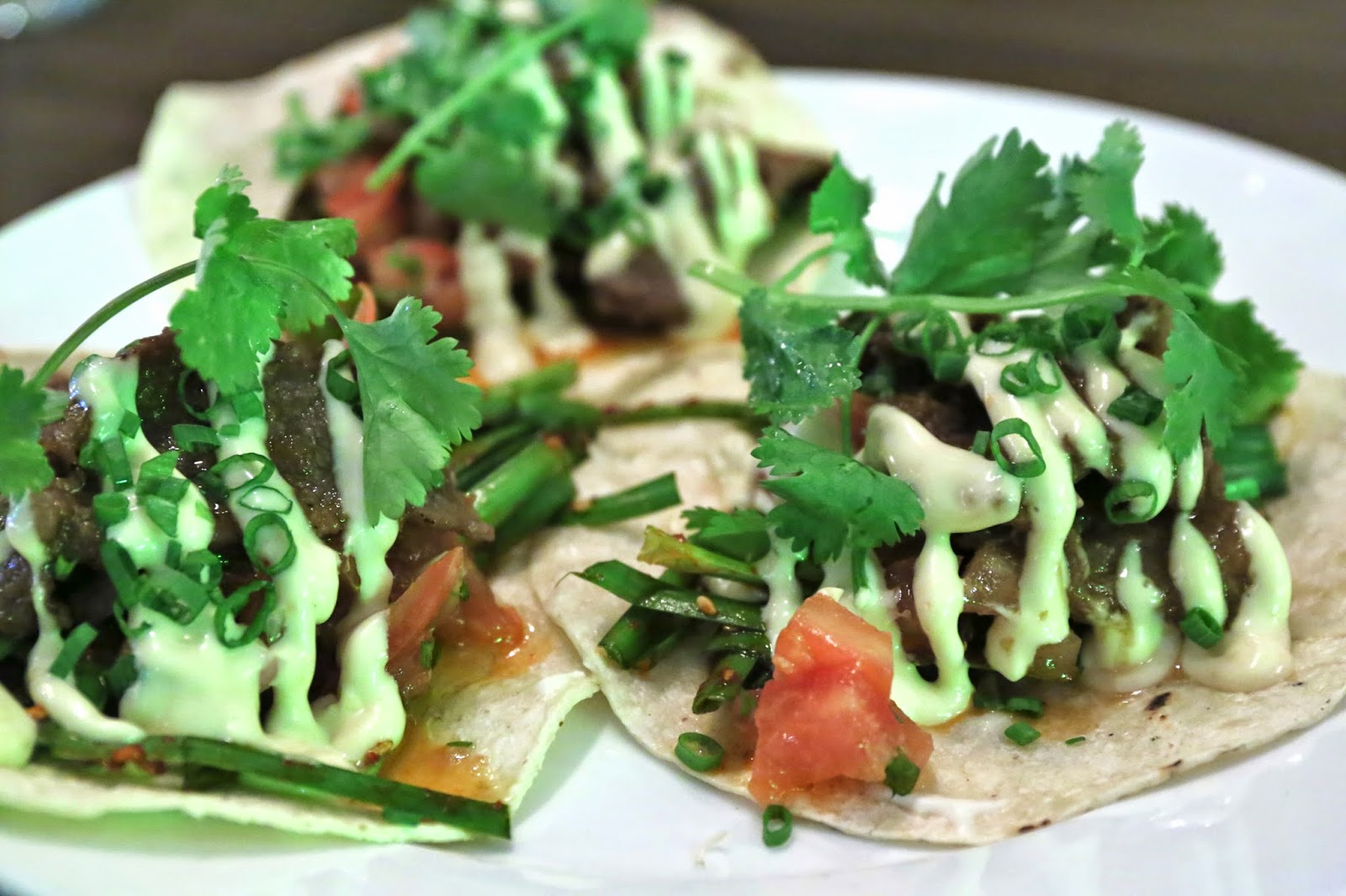 Bulgogi beef taco - kinda interesting, with chives added to give it an "Asian" feel. Taste-wise this wasn't bad, but the beef/sauce was just too wet, so it dripped down and splattered all over the plate. That's a pet peeve of mine...