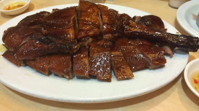 Since there were three of us, and getting just a quarter seemed a little weak, I decided to order half a roast goose (馳名脆皮燒鵝) for us. As it turns out, this was just a liiiittle bit much for us, but we did manage to finish it all. I don't think I'll ever get tired of that crispy skin, infused with the flavors of five spice, along with that layer of juicy fat underneath. Just heavenly.