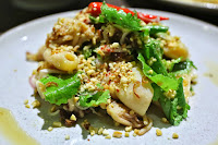 Wild caught baby squid salad - pretty nice. Flavors were almost a little like those Thai pomelo salads, with peanuts, fried shallots, lemongrass, and some acidity from calamansi.