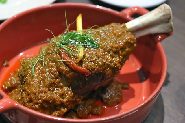 Rendang with Australian lamb shank - Mr. Ho requested the lamb shank over the "beef gold coin shin" (whatever that is...), and I certainly had no objections. This was beautifully presented, and the flavors were just amazing. While most of us are just used to traditional beef rendang, Candlenut loves playing with alternative proteins. We had a decent version with French duck breast last year, but this one takes the cake for me. And for Mr. Ho. The lamb fat with all the lamby flavors just blended so harmoniously with the complex flavors of the rendang. Let's put it this way... Mr. Ho was tempted to order a second shank even though we were already pretty full...
