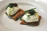 First came an amuse bouche, which was homemade ricotta with tapenade, basil, and olive on top. Interestingly with a hint of lemon flavor.