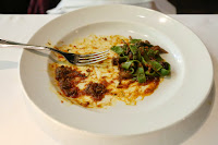 L actually ordered the small portion of quail that I originally wanted to add. When it arrived, we almost sent it back because we had assumed that a small portion would mean half a quail or something. Nope. It was a whole quail. No wonder the waiter told me not to order it when I've already got two pasta dishes. I shudder to think what the size of the "full" portion would be...