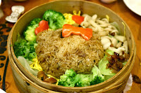 Hello Kitty diet stir-fried glutinous rice (健怡生炒糯米飯) - I thought this might fare better than the steamed rice, but I was wrong. I conveniently ignored the term "healthy" in the description, and this turned out to be pretty bland. All the ingredients - such as chopped spring onions, XO sauce, mushrooms...etc. were placed on the edges of the steamer, and I guess we were supposed to mix them up with the rice before serving.