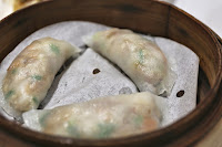 Steamed dumplings Fungshing-style (鳳城蒸粉果) - certainly different from the common Chiuchow-style steamed dumplings (潮州粉果), as the wrapper here was still opaque and not translucent. The absence of peanuts was conspicuous, and the fillings included prawns, ground pork, bamboo shoots, chives, carrots, and mushrooms. Milder in terms of flavors and without the hard crunch of peanuts.
