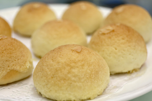 Almond flavored bun (雪影杏汁包) - a signature dish. Fragrant almond custard inside a crispy yet fluffy bun. A nice finish.