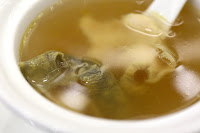 Double-boiled soup of conch with maitake musaroom (淮杞燠響螺湯) - ummmm... major typo and lost in translation here... First of all it's "mushroom", and in reality there's no maitake (舞茸) mushroom here. The other main ingredient is Chinese yam (淮山) and, of course, chicken.