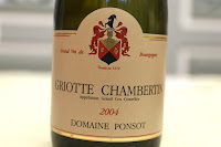 2004 Ponsot Griotte Chambertin - nose was definitely more closed initially, without decanting or aeration. A little smoky, animal, leather, with a little violet later. More acidic. Not drinking as well as the Prieuré-Roch.