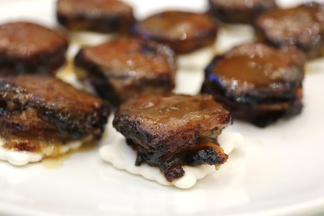 Here's a close up shot, and you can see that awesome glaze on top of the glistening fat. These were also significantly thinner than the ones we used to have at Manor.