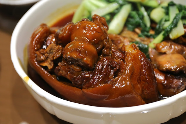 Braised pig knuckle (紅燒元蹄) - did I say the last dish was one of my favorites? Well this is even better, and my favorite since childhood. How can I not like a hunk of jiggly, wobbly, tasty skin and fat?!
