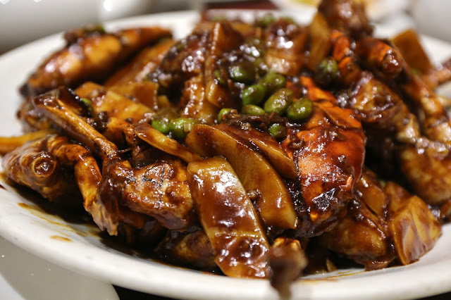 Fried crab, in soya bean sauce and with rice cakes (年糕醬炒青蟹) - this was highly anticipated, and indeed it's one of my favorite dishes in Shanghainese cuisine. I've always loved Shanghainese rice cakes, and when they're stir-fried with tons of soy sauce and sugar, and comes with crab covered in that sweet, sticky sauce... mmm mmm good.