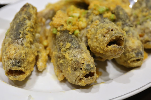 Pan fried yellow fish with salted egg yolk (黃金小黃魚) - actually pretty damn good! I only took the rear half with the tail, but the yellow croakers were very succulent, and the coating of salted egg yolk provided just the right amount of flavors.