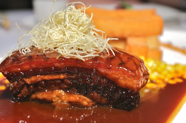Braised Spanish pork belly in homemade kimchi gravy with toast (京韓烤西班牙黑毛豬腩) - we had no idea how big this was... and it was pretty monstrous! Oh yeah, this pork belly was sooooo good... Just look at the grill marks on the skin...