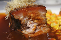 ...and the layers of fat. Very, very tender. I didn't quite get the "kimchi gravy"... but we needed it on top of those incredibly delicious, double-deep-fried toast sticks... But honestly, the pile of canned corn was a little WTF...