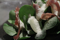 Spherical olives - a little something from the months Uwe spent in the kitchen of elBulli. While the olive flavors were pretty full-on, I found that "skin" to be a little too think for my liking.