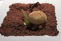 Potato: sweet, chocolate, caramel - this was actually a frozen scoop of ice cream made with Japanese potato purée, sitting on a bed of chocolate "soil". There were a few pieces of prunes marinated in Armagnac, and they were pretty tasty.