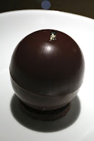 Chocolat grand cru 62% Bresil - I haven't voluntarily ordered a chocolate dessert in a while, but I'll happily eat one... No surprise that this was one of those thingies where hot chocolate sauce was poured on top of a chocolate shell, revealing a "surprise" inside. My friends and I were joking that this was the high-end version of Kinder Surprise...