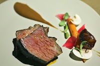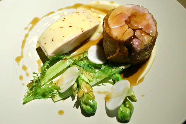 Chicken, cauliflower, lily bulb stem, Pedro Ximenez jus - we had seen a picture of this dish taken by my friend Chef David Lai, who had visited the restaurant just a few days earlier. This was definitely the upside surprise of the evening. The breast was so tender and moist that it almost melted in the mouth... although I would have taken marks off for not having the crispy skin on. The crispy skin, of course, ended up on the outside of the roulade that was made with dark meat. Needless to say this was also very tender, and much tastier than the white meat. For someone who normally doesn't eat chicken (because battery farm chickens are so bland), Hello Kitty was very impressed. So was I.