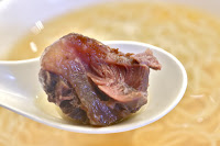 Beef noodles with clear broth (清燉牛肉麵) - I've never had this on all my visits, so I decided to try it out for once. Also TWD 1,500 a bowl. The first thing I noticed was that there was no beef in my bowl, only the clear beef broth and the noodles! The noodles are noticeably thinner than the ones used in the VIP beef noodles. The broth was clear, but I gotta say that it was a little too mild and delicate (read: bland). I love beef broth whether it's heavy or a clear consommé, but it's gotta have more oooomph than this!