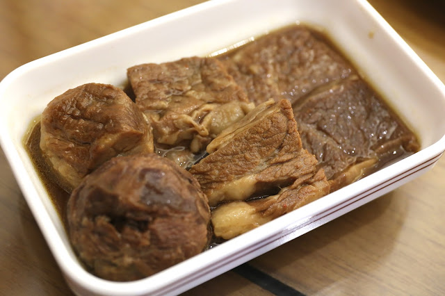 VIP beef noodles (貴賓牛肉麵) - this used to cost TWD 1,000 but today costs TWD 1,500. Comes with a classic, slow-braised beef broth full of beefy goodness. I suggested that Hello Kitty take this since it is the signature of the restaurant. Five very tender cubes of beef, with different cuts coming from several countries.