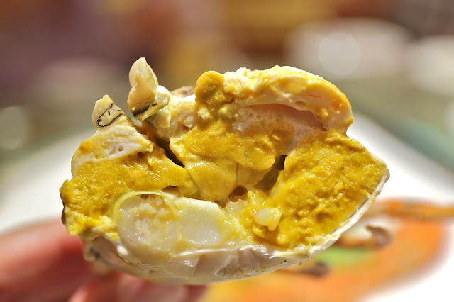 But looking at the roe it's obvious that it's soft and yellow, which I believe shows that the female has yet to mate. If the Interweb is to be believed, the roe turns reddish and hard after mating - eventually forming into individual eggs. So yeah, I think we were indeed feasting on virgins, and boy, did their flesh taste sweet!
