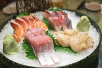 Sashimi platter (生魚片拼盤) - the lightly torched scallop was nice, as were the great amberjack (間八) and striped jack (縞鰺). I didn't take the salmon, naturally...