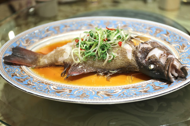 Steamed leopard coral trout (清蒸七星斑) - commonly referred to as eastern star garoupa (東星斑) in Hong Kong. Pretty yummy.