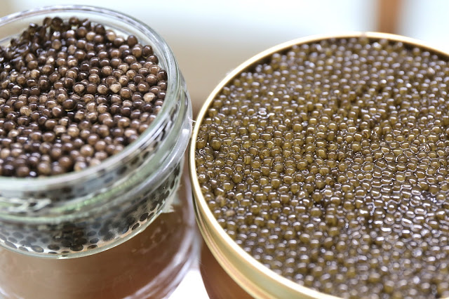 Russian malossol oscietra caviar - the control sample, the same type we had last month. Unfortunately some of the eggs had burst, maybe due to temperature changes during transport.