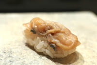 Clam (蛤) - not quite drenched in the sweet sauce the way Jiro does it, but still a little sweet. A little yuzu.