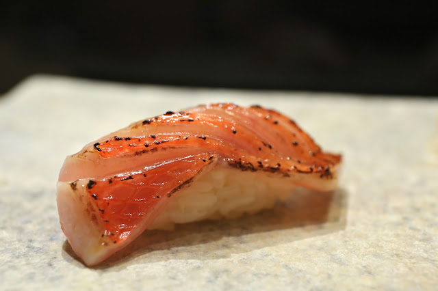 Splendid alfonsino (金目鯛) - nicely torched on the skin side. I love this fish... especially when you melt the fat a little with some heat.
