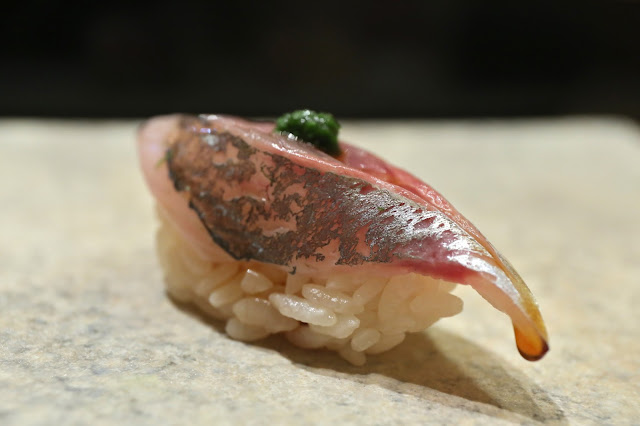 In terms of sushi, it was interesting to find there was enough vinegar in the rice to be noticeable, without being in-your-face the way Jiro does it. The rice grains were actually a little harder than I expected, which isn't the norm in this part of the world. My only complaint is that I felt Osumi-san sometimes didn't pack the rice grains tightly enough, and on a couple of occasions, the shari fell apart as I picked the pieces up with my fingers.