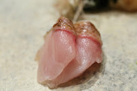 Gizzard shad (小鰭) - I've never had it served quite like this before... just one single stroke splitting it in half. Love the vinegar marinade.