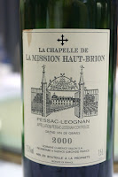 2000 La Chapelle de la Mission, en magnum - decanted 2½ hours and poured back into the bottom 2 hours before drinking. Definitely notes of leather, with a little smoke, and pencil lead. Nice fruit showed up once it opened up more. Later on the nose was much more smoky with a little black pepper. Very smooth on the palate and definitely drinking as it should.