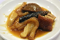 So each of us got an abalone, along with spiny sea cucumber, fish maw, pig tendons, goose web, pork belly, along with bamboo shoots. Everything, and I meant everything, was nice and soft and delicious... from the abalone to the sea cucumber to the goose web... and especially the pork belly - as the skin had been deep-fried to a crunch before braising.