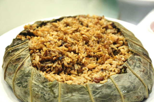 Steamed fragrant rice in lotus leaf (飄香荷葉飯) - this was very, very good... too bad we were all pretty full by now and unable to make too much of a dent in this.