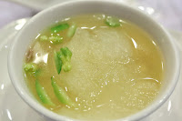 Double-boiled winter melon soup with shrimps, Yunnan ham, fresh crab meat and lotus seeds (原個燉冬瓜盅) - after having our luxury stew with rich and heavy flavors, it was time to balance things out with a very clear soup. The winter gourd helps to cool down our body's constitution, so it's perfect for warm weather.