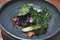 Side view shows the other leaves underneath. I thought there was also some radicchio or red cabbage. Anyway... Ducky tasted the "fermented cabbage" and immediately declared that this was simply "washed down kimchi made by a white person who is vegan"... Well, I guess that's what a Korean would say... As for me, I just thought it tasted a little like sauerkraut... But I really did enjoy the roasted kale.