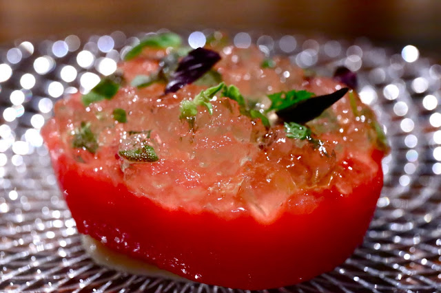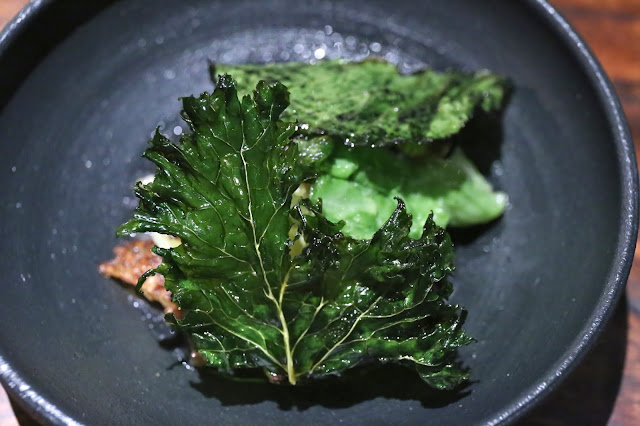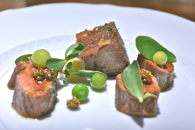 Tomato - the tomato is from the restaurant's own garden, garnished with grilled tomato gelée and aromatic herbs on top. At the bottom there was some corn pudding and tomato preserved in the wood oven. I thought this was pretty good, as I love the umami flavors of a tomato essence. The basil and mint on top were especially intense in terms of flavors.
