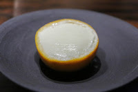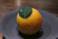Citrus sorbet (or ice cream, since it has buttermilk?) made with mandarin orange, with chunks at the bottom. Texture was very smooth and different. Turns out this was made with a Pacojet.