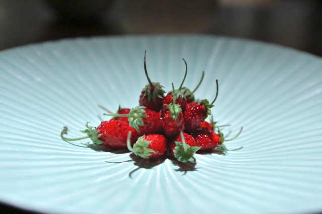 It was then poured on top of the beets, which have been hung over the fire for 3 days while they have been smoked and dehydrated. There were also elderberries and pickled rose petals on top. The vinegar sauce was surprisingly nice. In fact, the whole dish was much better than