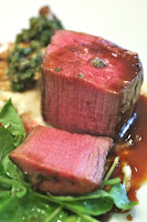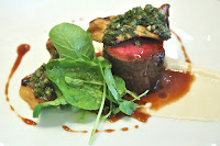 Angus beef tenderloin, soubise, caper-jalapeño relish, king trumpets and lemon-thyme jus - now pretty stuffed after the samosa, this wasn't what I was looking forward to...