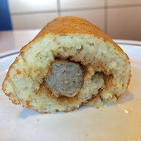 Then I rolled the pancakes around the sausages myself, creating a not-so-elegant version of my favorite dish. The pancakes were, of course, drenched in the traditional syrup.