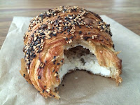 Their butter croissant was pretty good, but what really bowled me over was their everything croissant. Imagine an "everything bagel"... except that it comes with layers of flaky pastry... and buttery goodness. Take the butter croissant and add sesame seeds, poppy seeds, toasted onions... and add what seemed to be cream cheese on the inside of the croissant. So freakin' good! Those onions really pack a punch! I wished I had bought 2 more of these...
