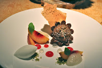 Pistachio financier, zee grand nectarines, chamomile, lemon gelato - the financier was OK, if a little on the hard side. The lemon gelato was nice, the St-Germain gel was an interesting touch, and the chamomile foam was pretty nice.