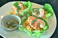 Spicy shrimp lettuce wraps, rice noodles, tamarind dressing, avocado and nam pla dipping sauce - I guess I wasn't expecting large, whole shrimps here, but they were pretty fresh. There was probably a little too much rice noodle in each of the lettuce cups, so eating them became a little challenging, especially with the dipping sauce already dressed. Speaking of which... the fish sauce I get, but where's the avocado?