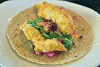 Crispy petrale sole tacos, sweet and sour cabbage, cilantro and spicy aioli on warm tortillas - I nicked one of mom's fish tacos, and these were pretty good. I never thought I'd like fish tacos, but these days I'm definitely coming around. The spicy aioli was nice.