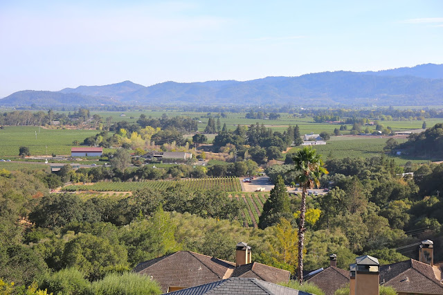 We had a lot of time to kill before dinner, so we decided to show up at Auberge du Soleil early and just parked ourselves at the bar. The terrace overlooks the beautiful Rutherford section of the valley, and it's nice to hang out here and relax - when the temperature isn't as high as it was today.